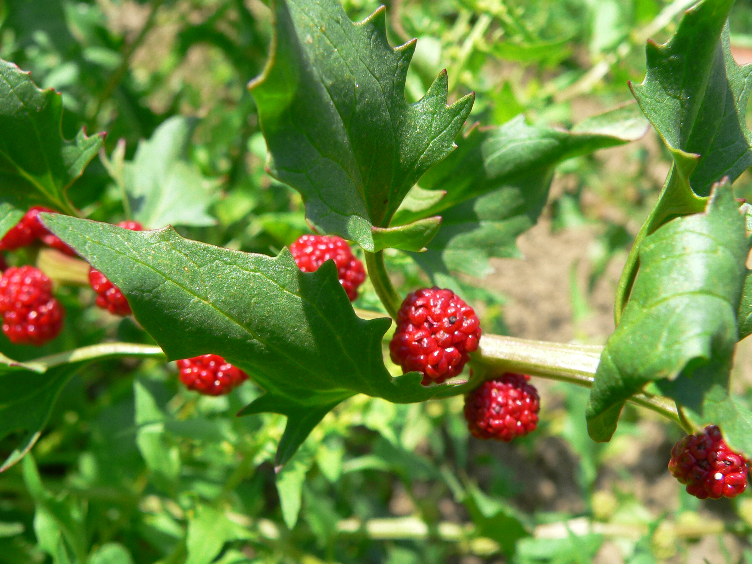 Der Erdbeerspinat macht seinem Namen alle Ehre: Die Blätter kann man wie Spinat verputzen, die Früchte erinnern im Aussehen und geschmacklich an Erdbeeren – heißt es jedenfalls. Echte Erdbeeren sind allerdings deutlich leckerer, die hier machen sich aber gut als Hingucker im Salat. Genauso übrigens wie Folgendes: