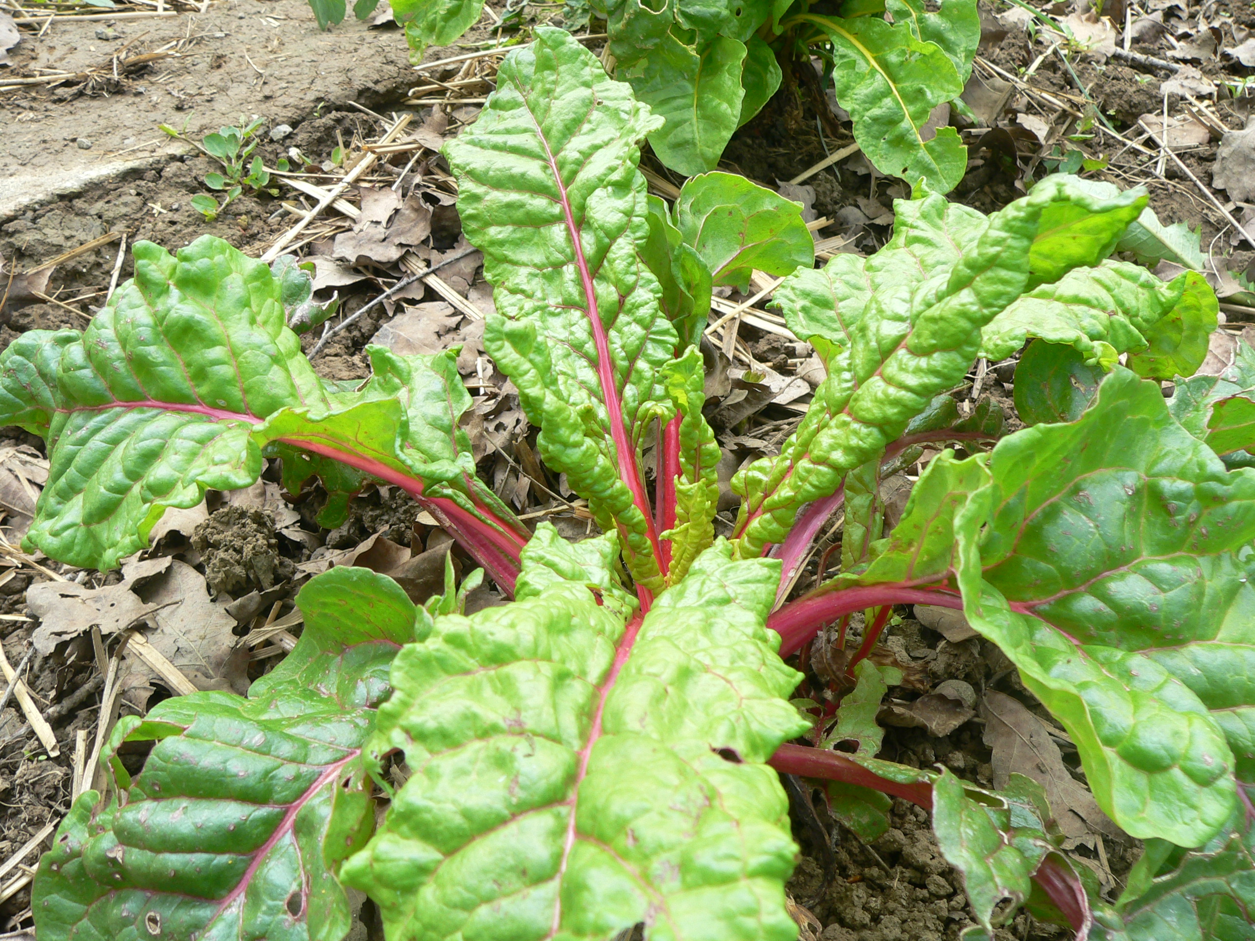 Los geht es mit einer Mangoldpflanze. Die hat, zusammen mit einigen anderen, den Winter gut überstanden und ist bald schon wieder erntebereit. Neue Pfänzchen haben Judith und Steffen auch angesät. Denn Mangold schmeckt lecker und ist bisher auch immer gut und reichlich gewachsen: