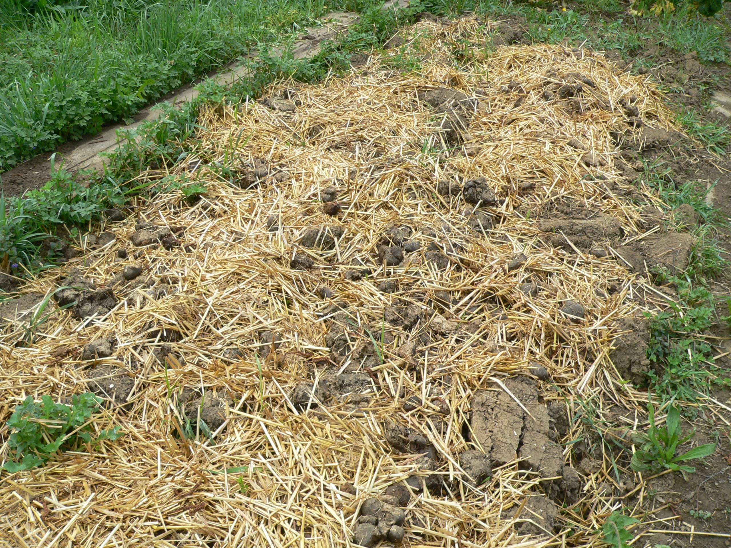Pferdemist! Der wurde einfach mal auf die zukünftigen Zucchini- und Kürbisbeete ausgebracht und auch die baldigen Tomatenbeete wurden damit gemulcht. Da scheiden sich ja die Geister, ob frischer Pferdemist gut ist, oder ob er nicht doch erst gelagert werden sollte. Hier auf dem Örtchen wird derzeit jedenfalls ein Frischmist-Experiment betrieben.